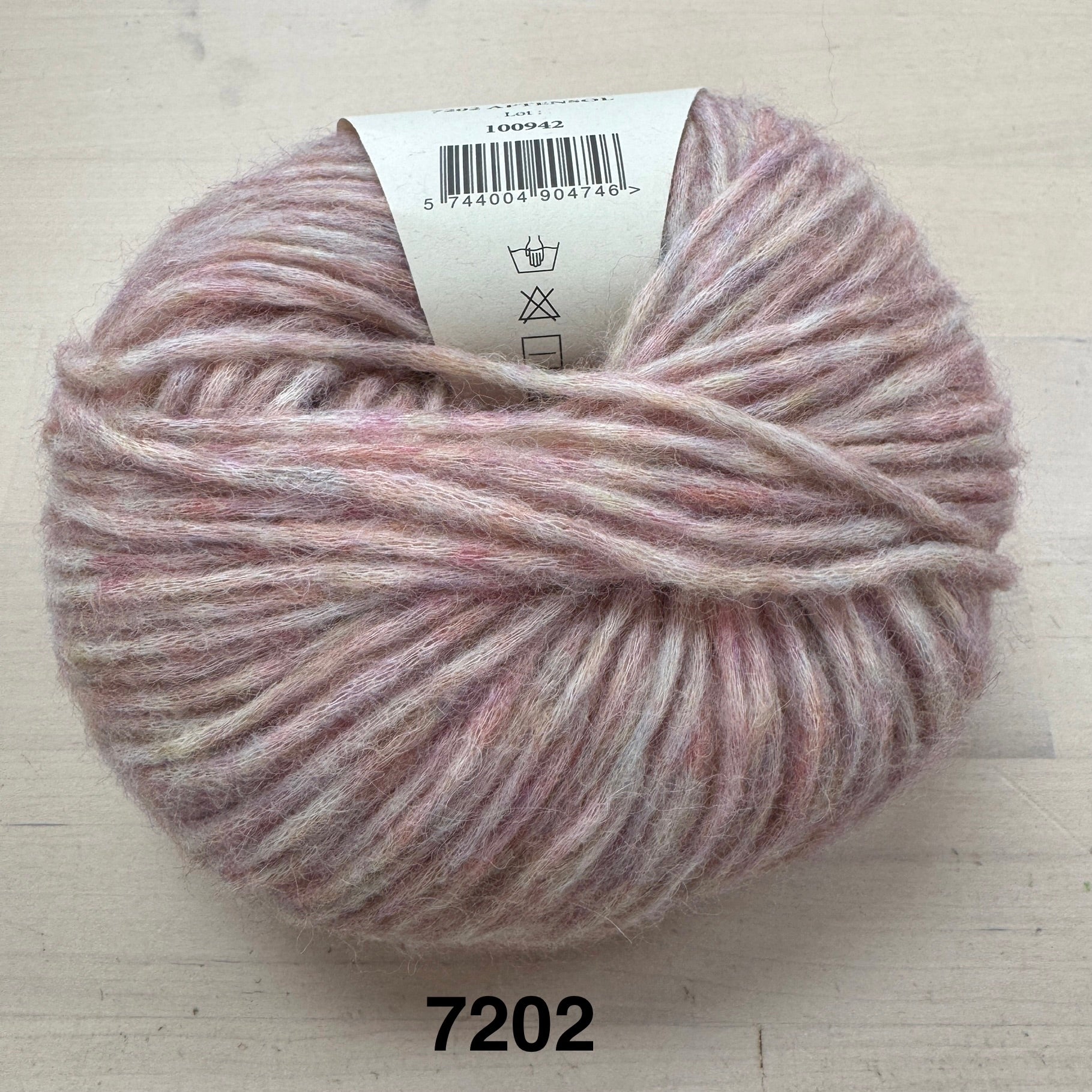 Light as a ... and delightfully playful. This yarn is an extra-soft alpaca/merino blend blown through an organic cotton tube. Ideal for sweaters and accessories that are warm yet still lightweight.