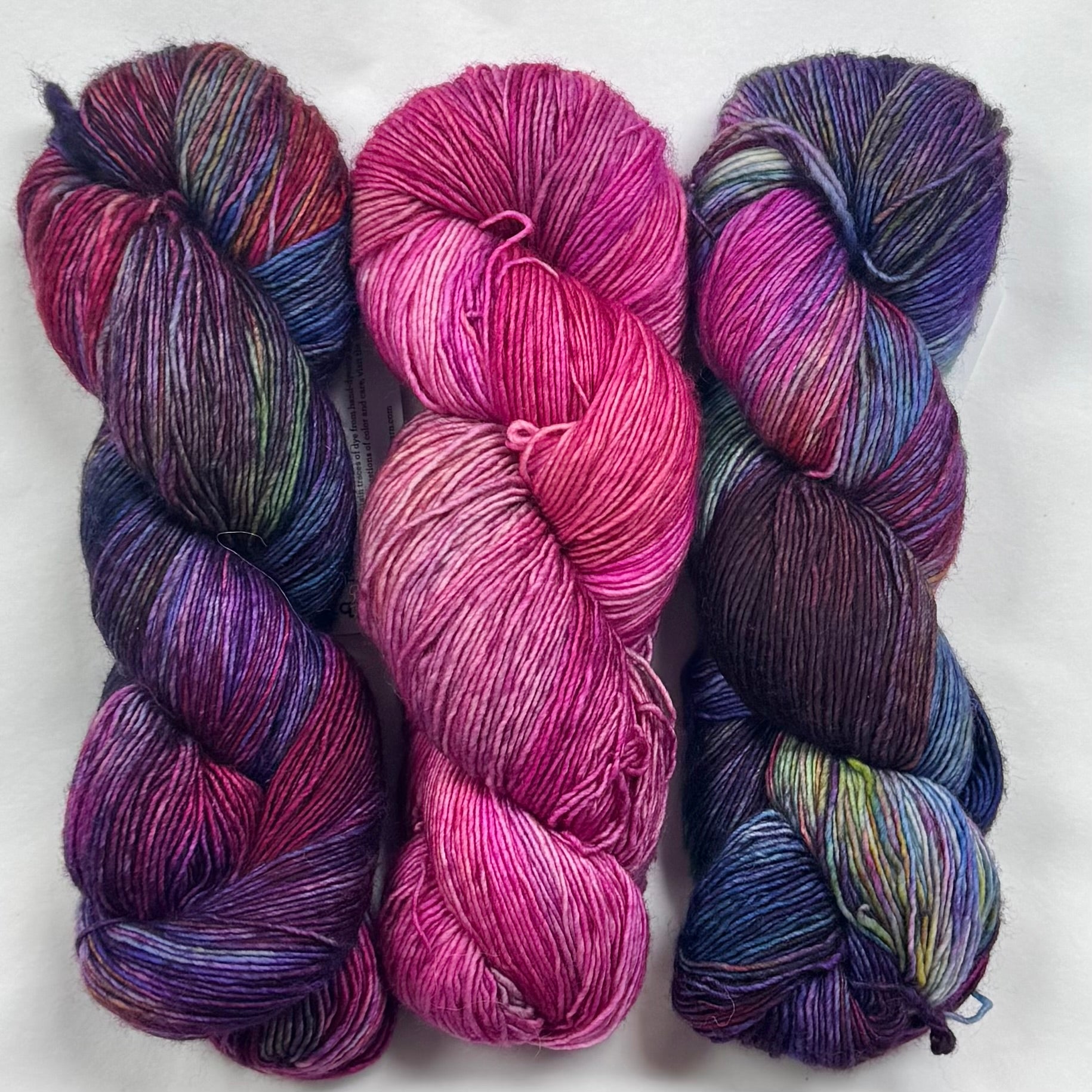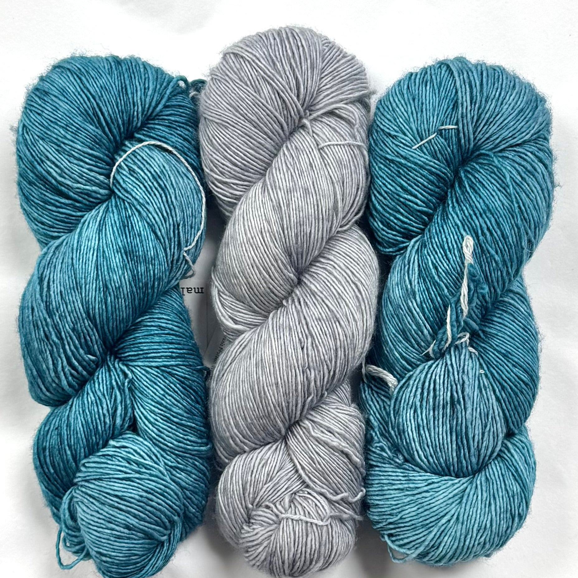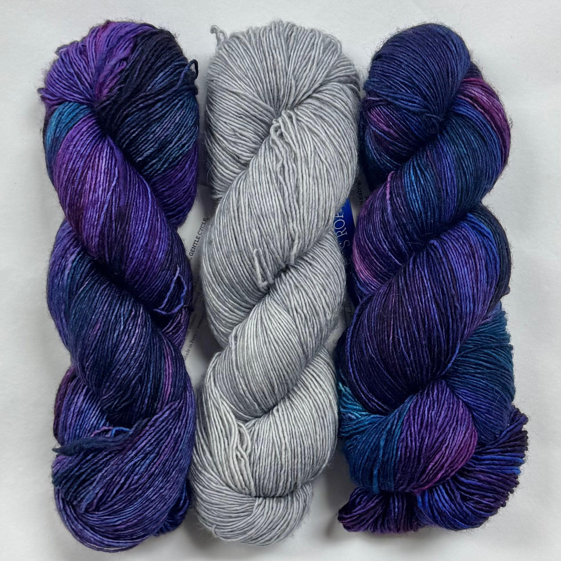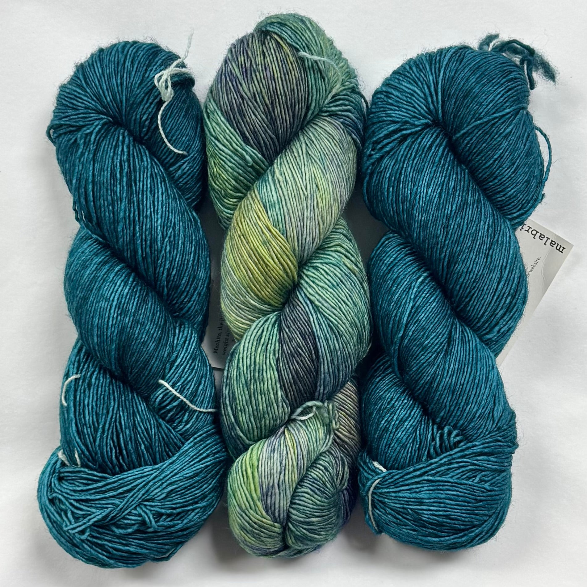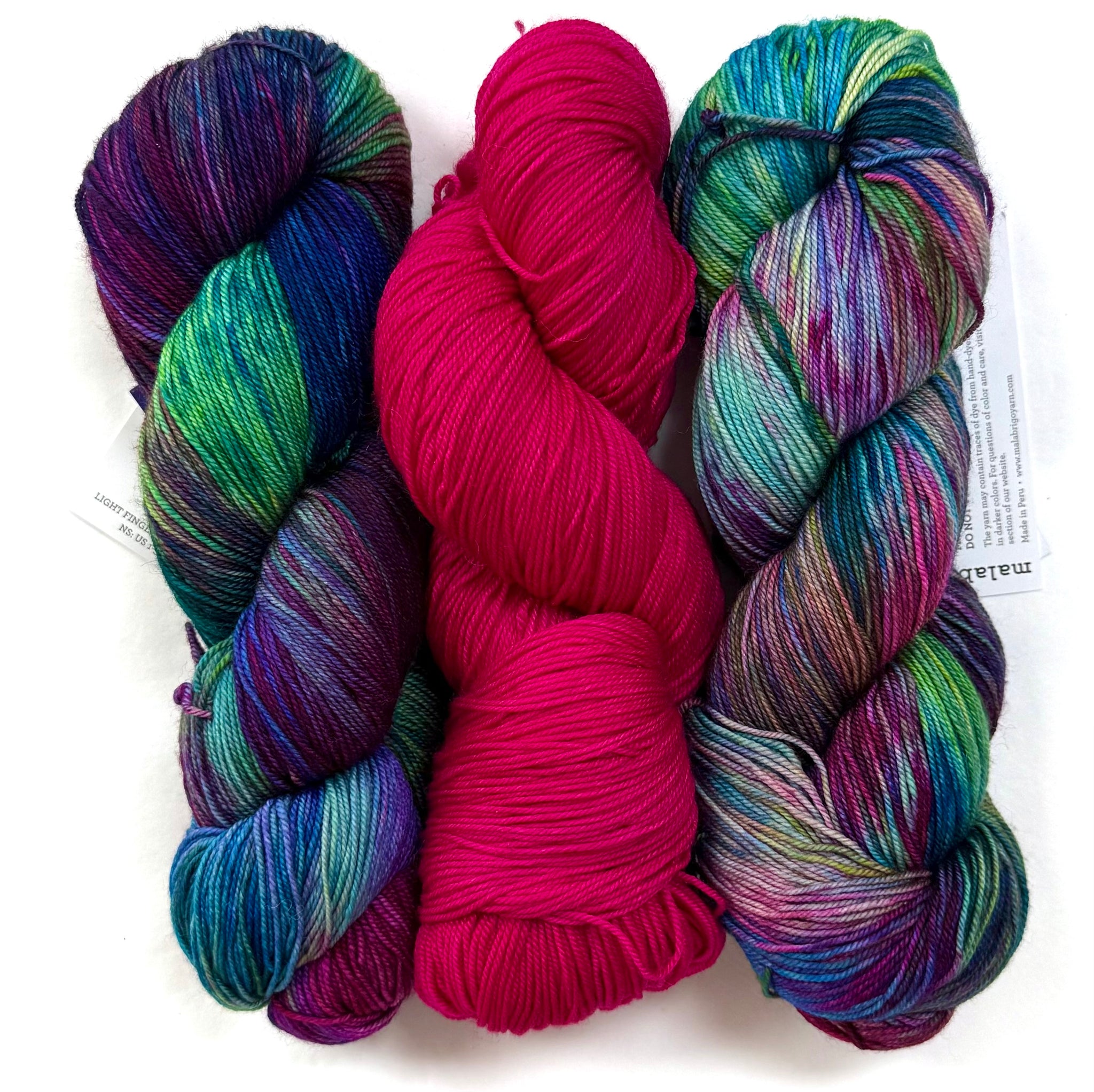 Each kit contains 3 skeins of Malabrigo Sock or Malabrigo Mechita