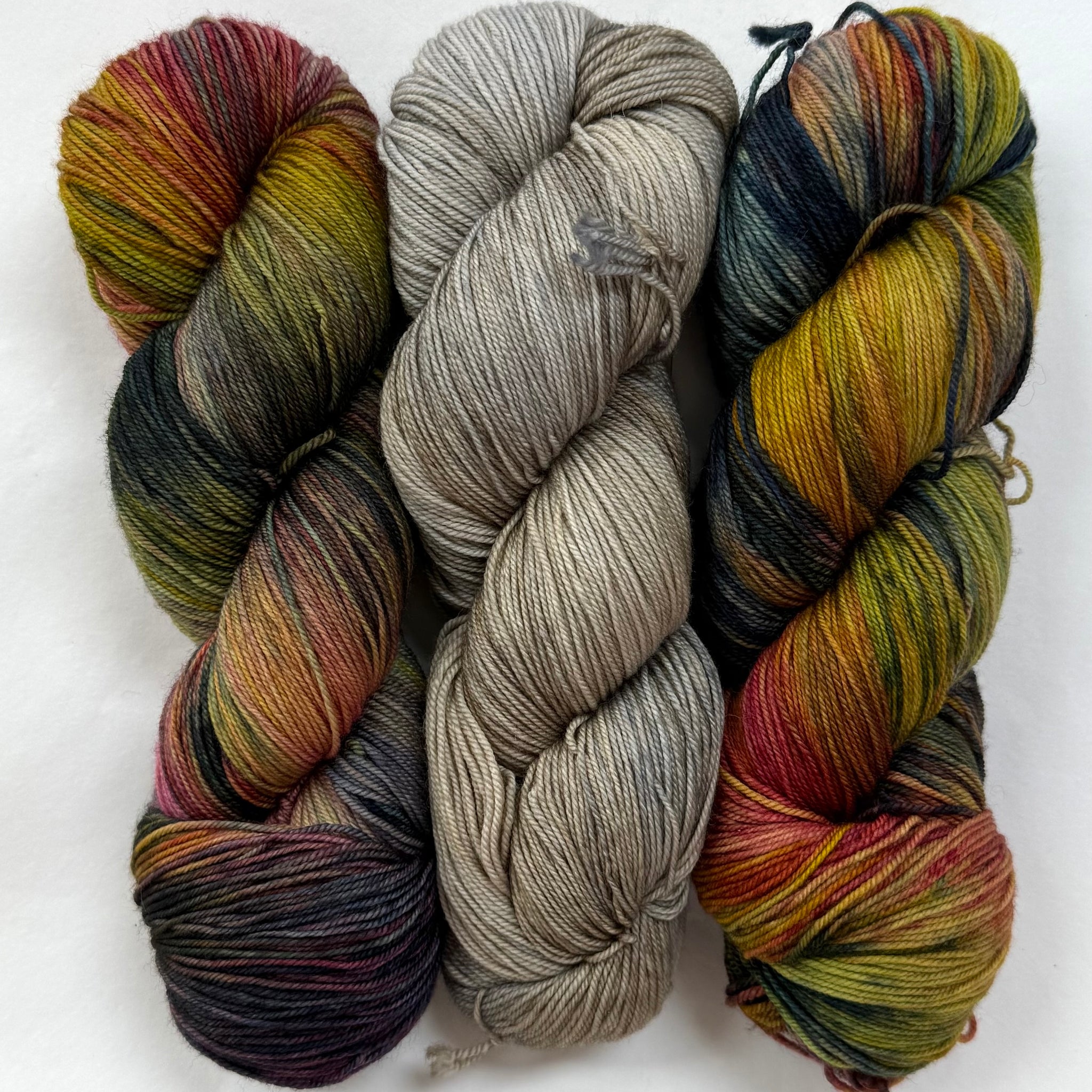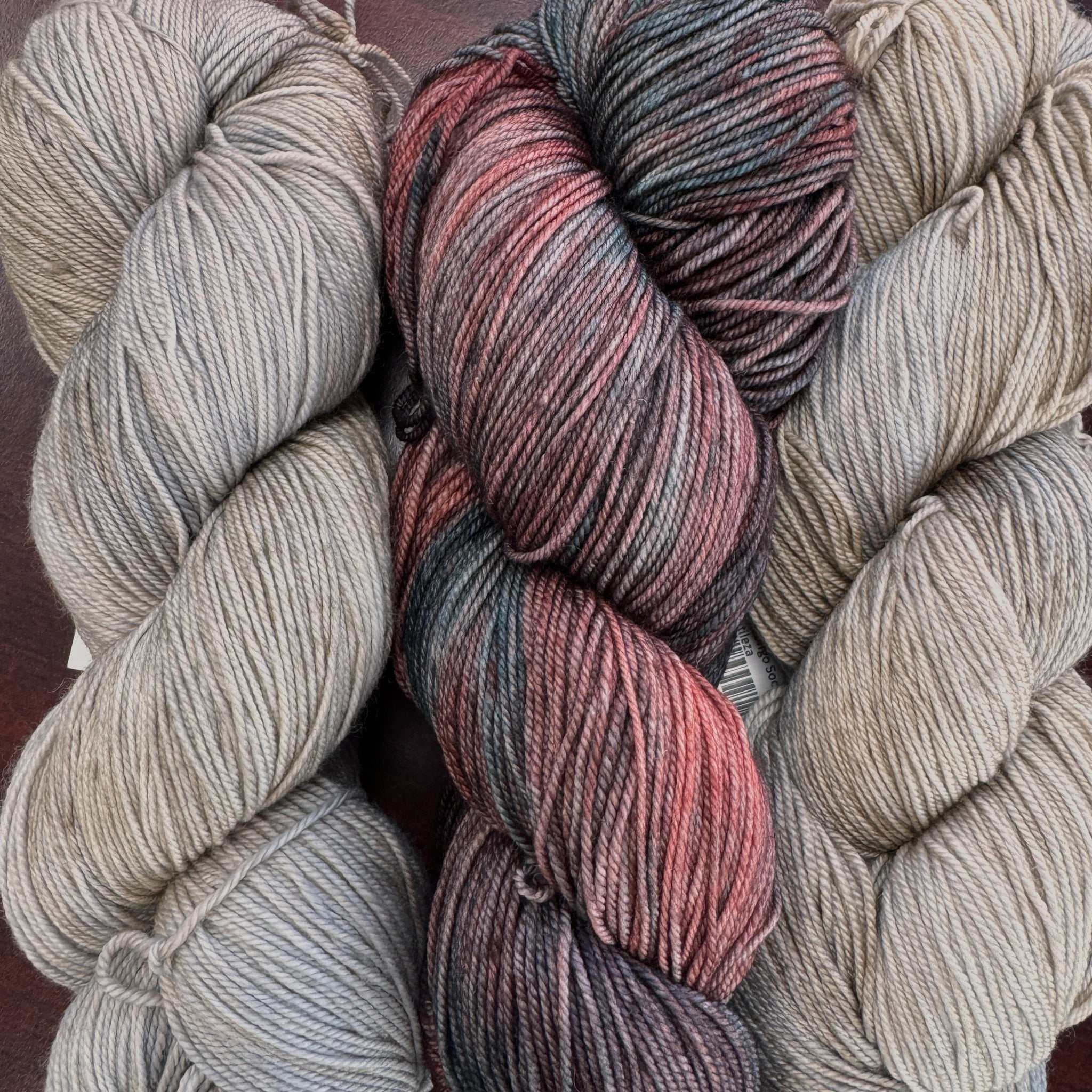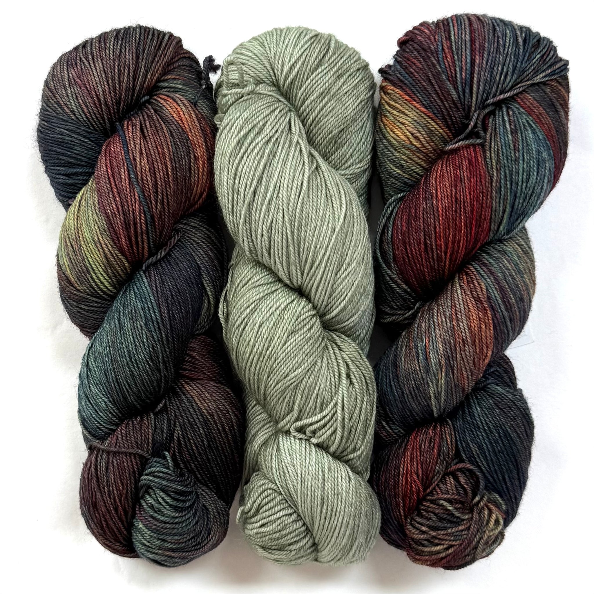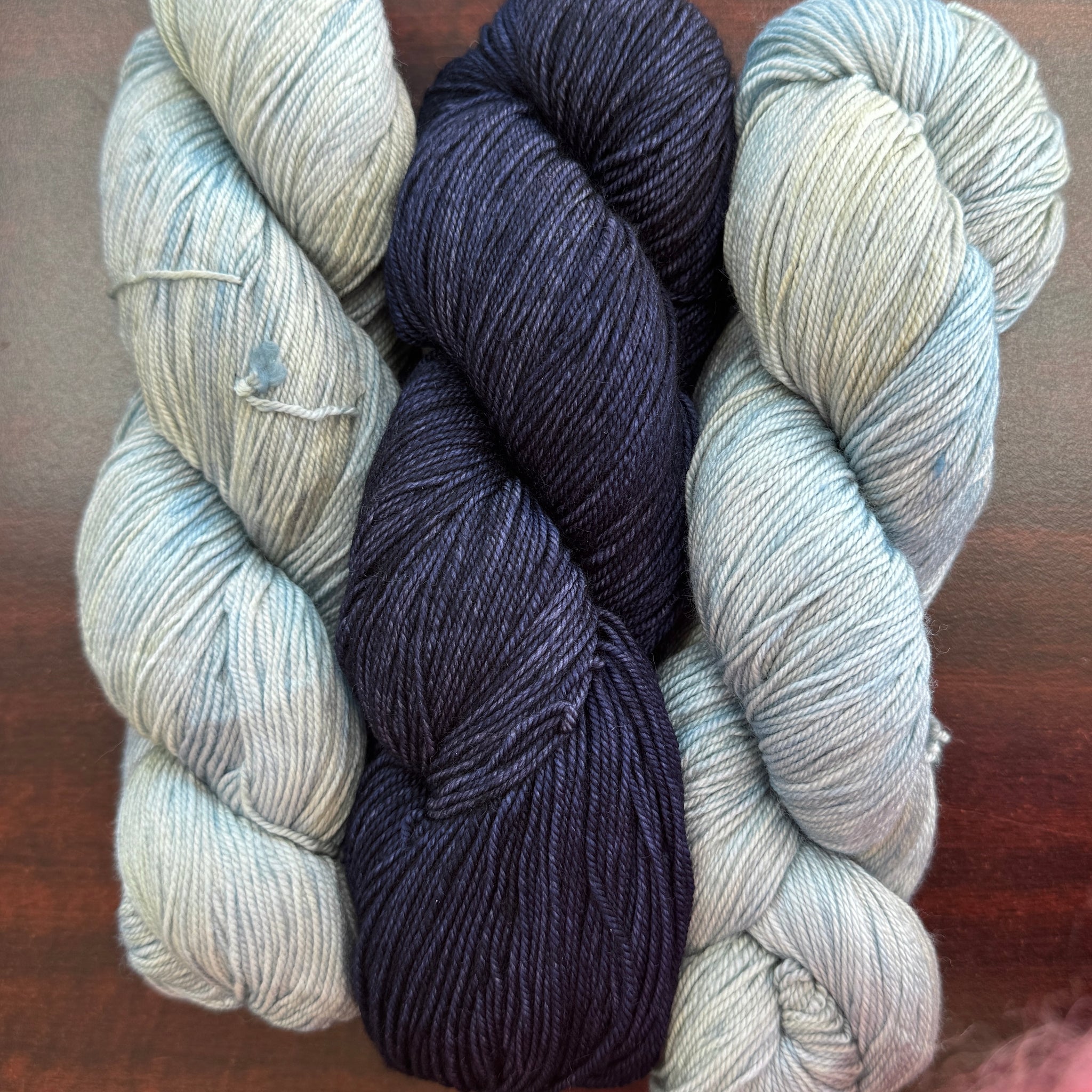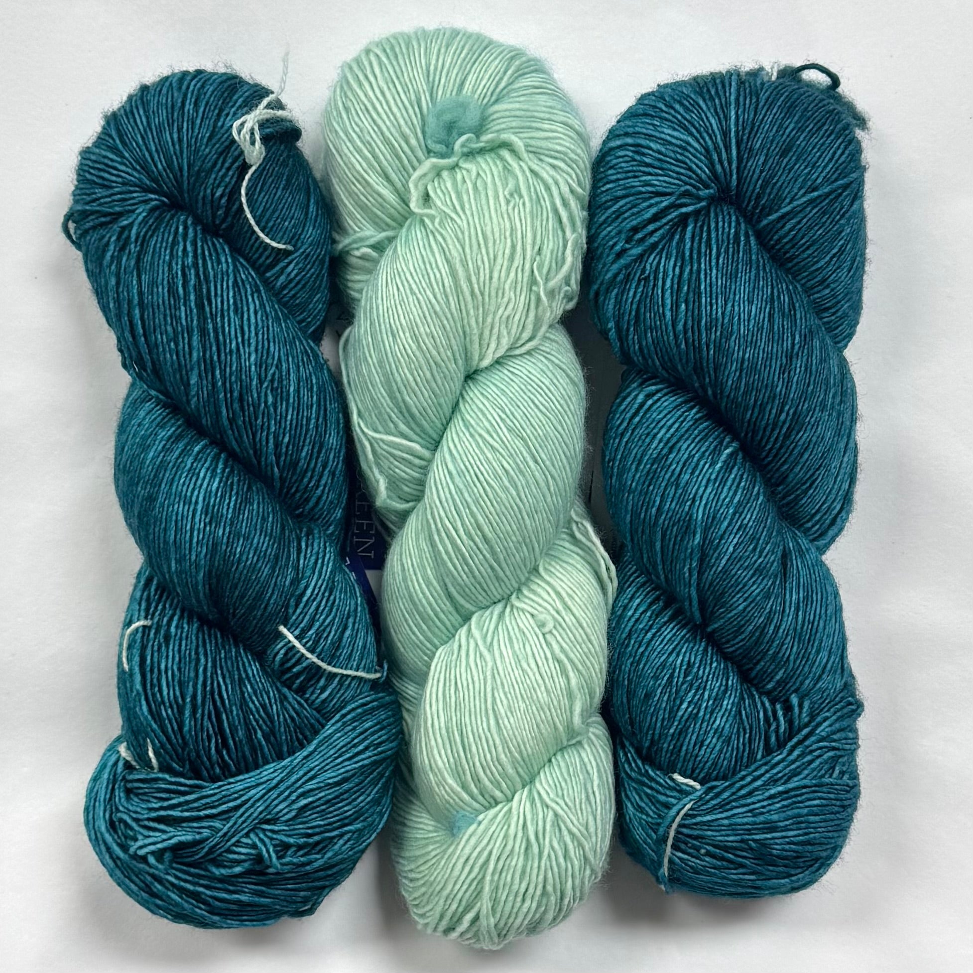 Each kit contains 3 skeins of Malabrigo Sock or Malabrigo Mechita