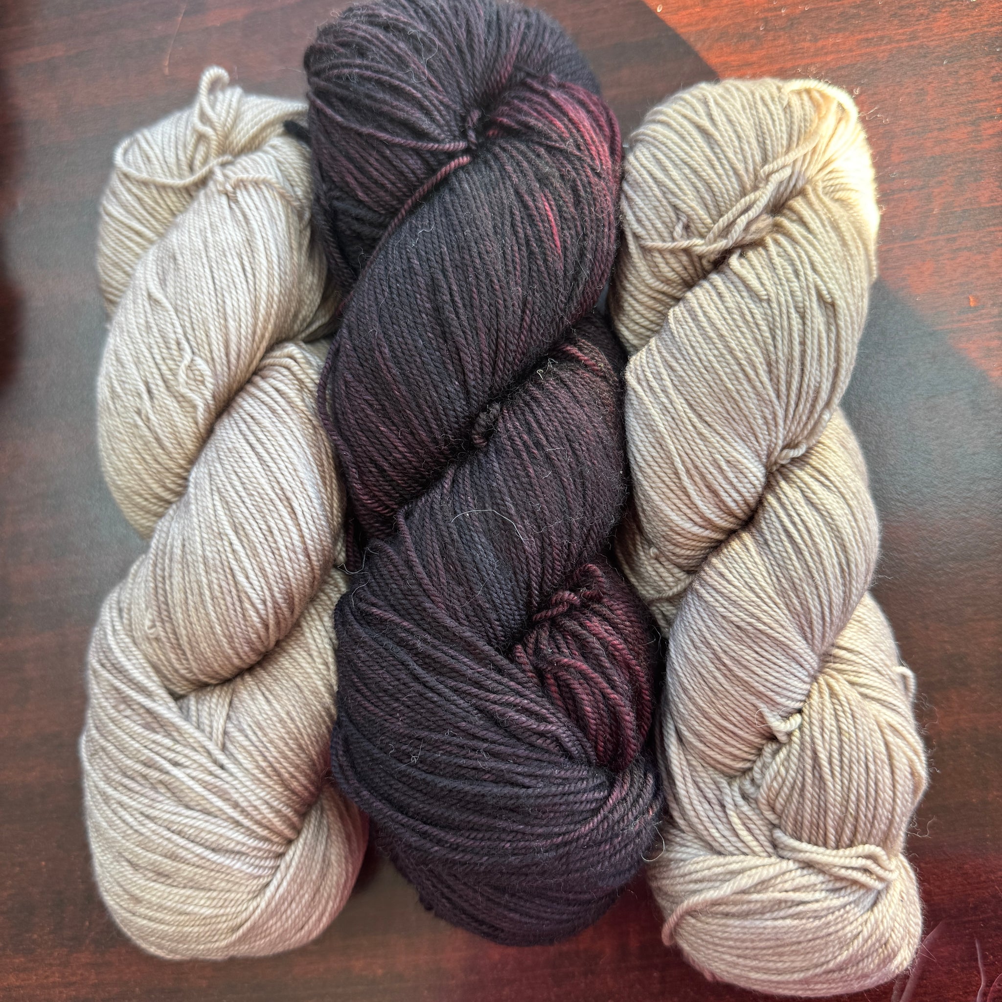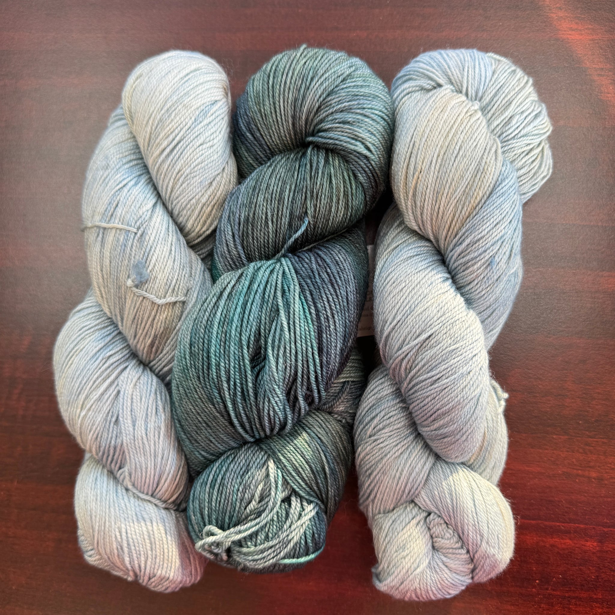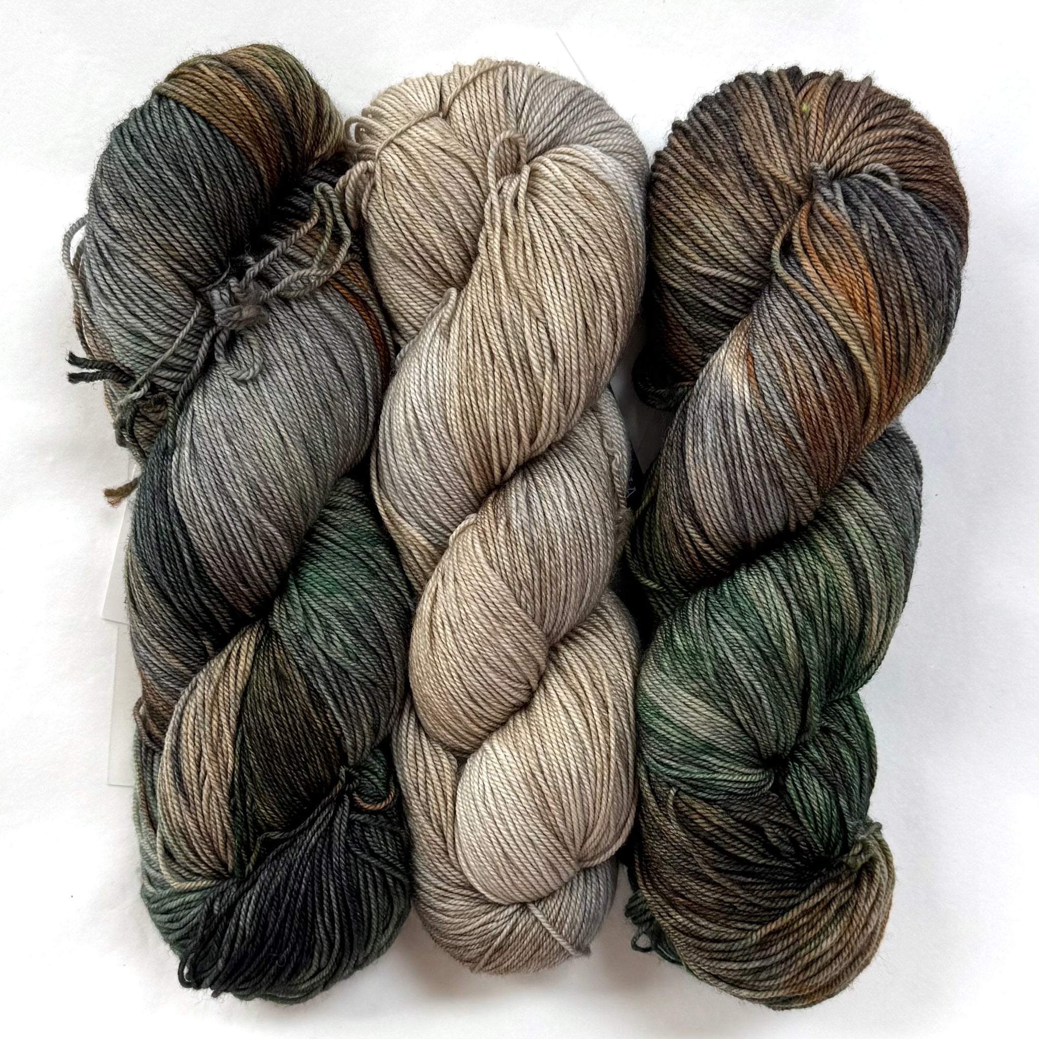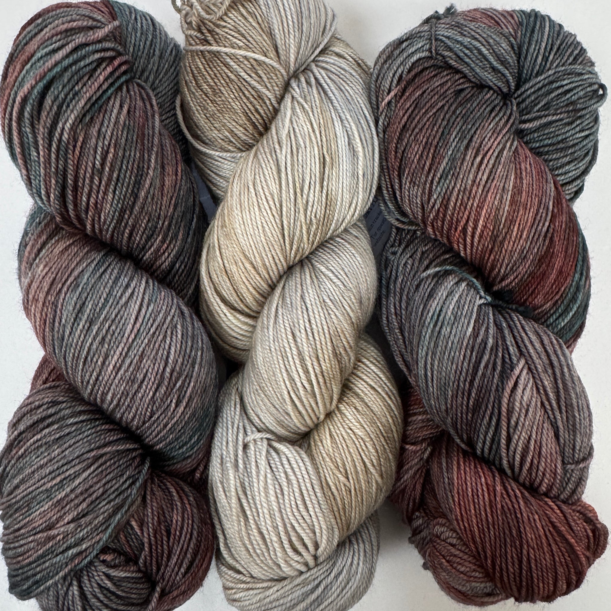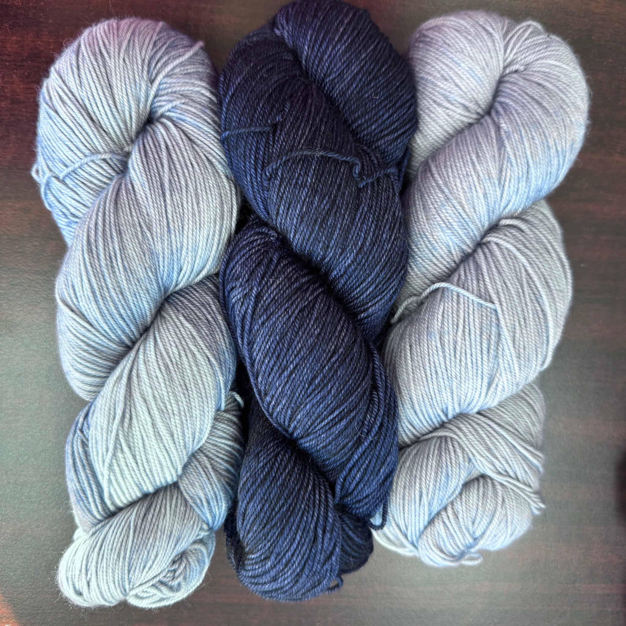 Each kit contains 3 skeins of Malabrigo Sock or Malabrigo Mechita